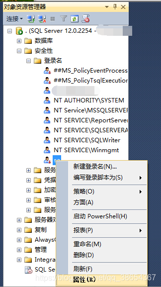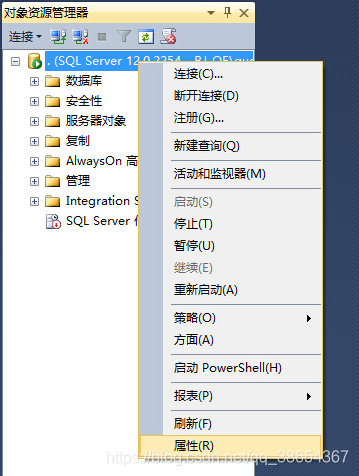 STEP1. 打开SSMS,使用Windows身份连接数据库,登录后,右键选择“属性”