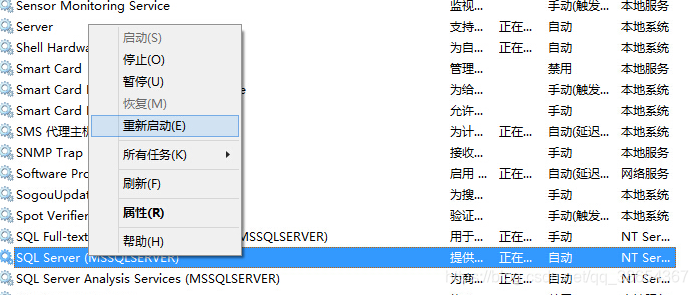 并且需要注意的是,有些地方如果没有生效,请重启一下sql server(可以从SSCM里,也可以从系统服务中找),下面是详细的步骤: